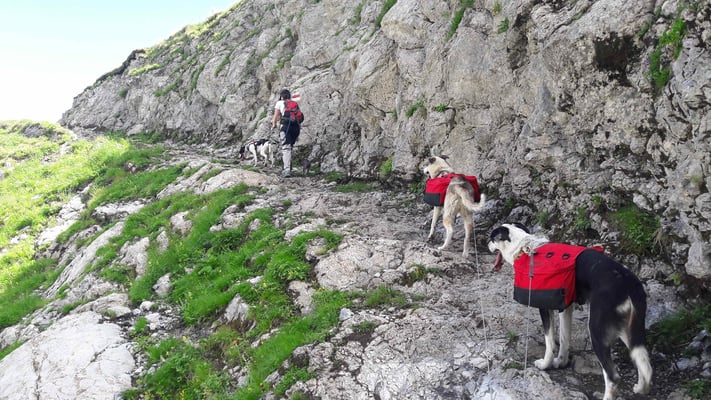 Vor dem Start gibt es noch genügend Zeit, sich mit dem Material (Hüftgurt, Wanderleine) vertraut zu machen, und die geeigneten Mensch-Hund-Teams zusammenzustellen. Auf Wunsch können die Hunde auch eine Packtasche tragen, in welcher zum Beispiel der Regenschutz oder ein paar Hundeleckerli Platz finden.
